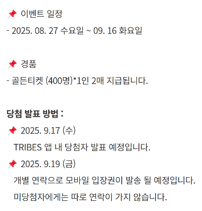 - 골든티켓 응모: LIFEPLUS Tribe 앱 이벤트, 9월 중 발표